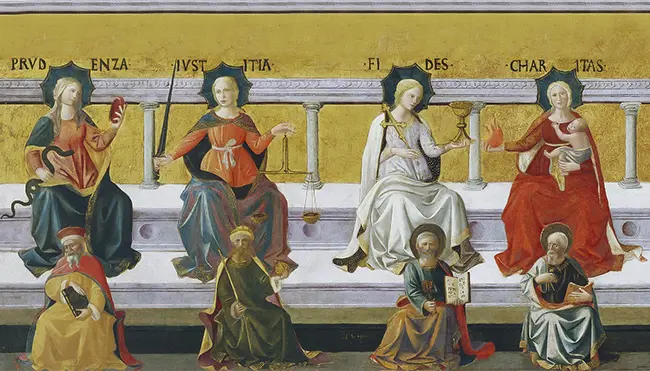 Le virtù teologali, che vivificano tutte le altre, sono tre: fede, speranza e carità. Esse riguardano l’unione con Dio, nostro fine ultimo soprannaturale, e ci mettono in costante relazione con la Santissima Trinità. Per quanto riguarda il nostro rapporto con il prossimo, entrano in gioco le belle virtù morali, che la Teologia riassume in quattro principali, chiamate cardinali: prudenza, giustizia, fortezza e temperanza. Esse ci permettono di vivere in questo mondo secondo la nostra altissima condizione di figli di Dio, eredi del Regno celeste.
