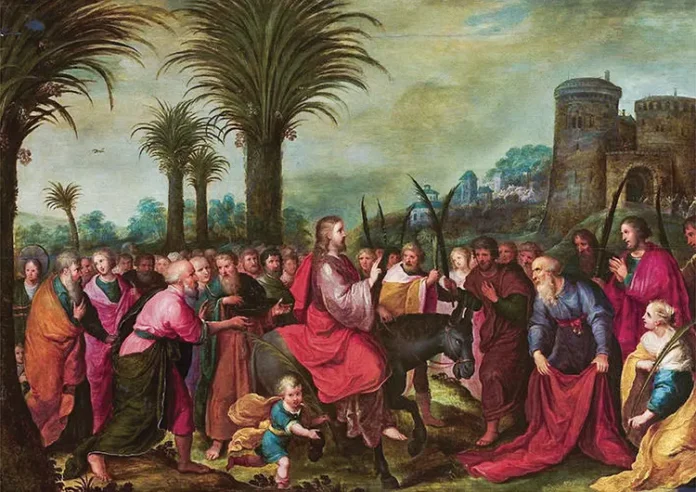 Nostro Signore sceglie la Città Santa come palcoscenico per gli eventi drammatici della Redenzione: «Esulta grandemente figlia di Sion, giubila, figlia di Gerusalemme! Ecco, a te viene il tuo Re. Egli è giusto e vittorioso, umile, cavalca un asino, un puledro figlio d’asina» (Zc 9, 9). Lì Gesù viene accolto e acclamato al suono di canti e lodi: «Osanna» – in ebraico1, redenzione – «al Figlio di Davide! Benedetto colui che viene nel nome del Signore!» (Mt 21, 9). Alcuni stendevano i loro mantelli, altri tagliavano rami dagli alberi e li spargevano sulla strada per manifestare la loro gioia. Ciò che i farisei, i dottori e le autorità del Sinedrio Gli avevano negato, la folla lo proclama, scuotendo la città fin nelle sue fondamenta.