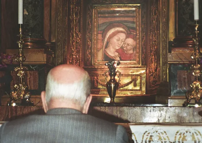 Contemplando l’immagine della Madre del Buon Consiglio e vedendo il Bambino Gesù così protetto e così stretto a Lei, vorrei che un raggio di grazia scendesse su ciascuno di noi e ci portasse a comprendere quanto dovremmo essere così nei confronti della Madonna: figli intimissimi, convinti che la Sua misericordia non si stanca mai, che il Suo perdono non ci viene mai negato e che il Suo sorriso materno quasi ci precede, non appena ci rivolgiamo a Lei. Del resto, la grazia stessa di ricorrere a Maria Santissima ci è concessa per Sua intercessione. Da qui nasce una fiducia illimitata e continua nella Sua bontà, in tutte le occasioni, in qualsiasi circostanza, in tutti i modi.